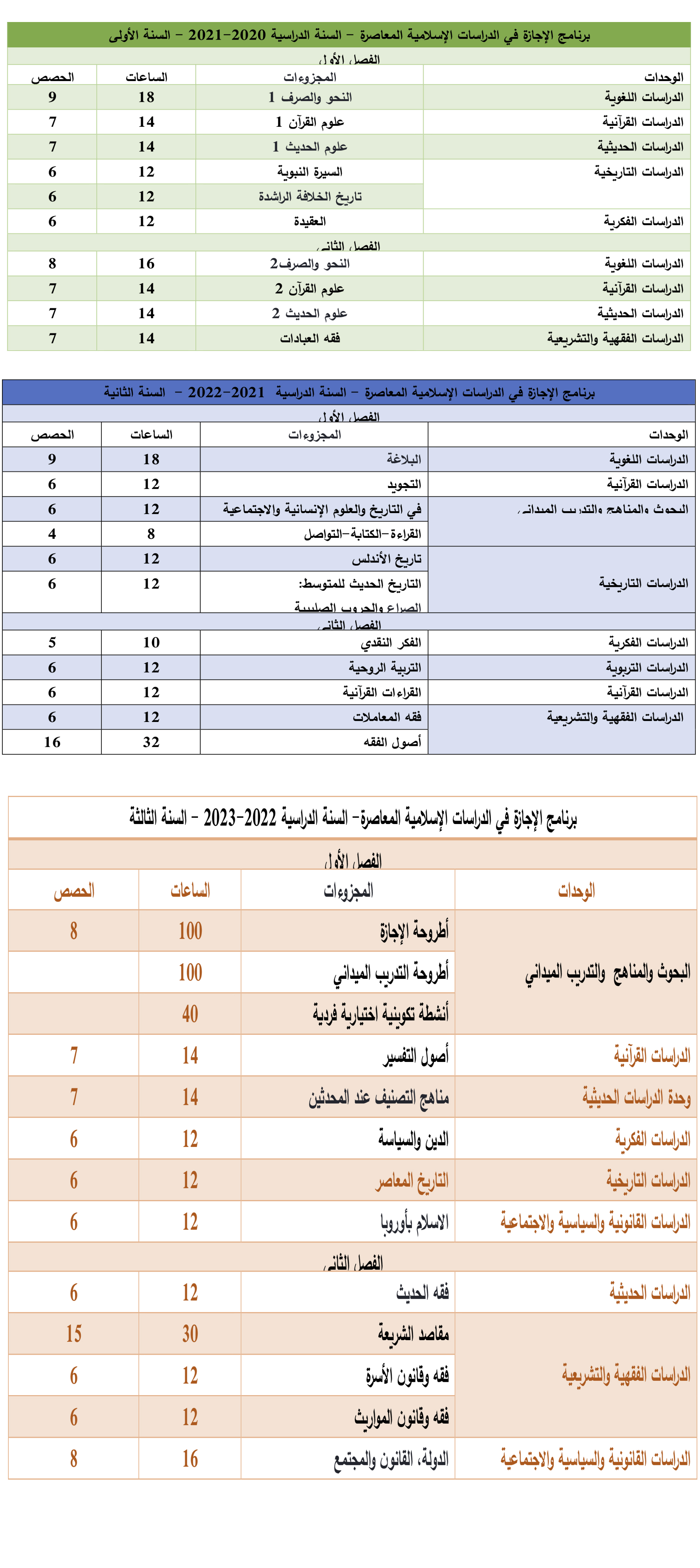 Este grado dura tres años y persigue profundizar en el estudio de las ciencias jurídicas islámicas y el método profético, así como familiarizarse con las ciencias humanitarias. Además, se busca proporcionar habilidades lingüísticas, intelectuales, doctrinales, comunicativas y sistemáticas que les permitan completar sus estudios universitarios y servir a la comunidad contribuyendo científicamente en la transmisión intelectual.